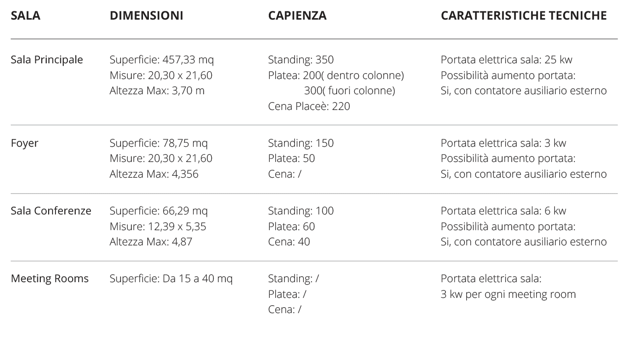 Salone Principale Foyer Zona Catering Meeting Rooms Guardaroba Toilette Sala Conferenze Toilette
